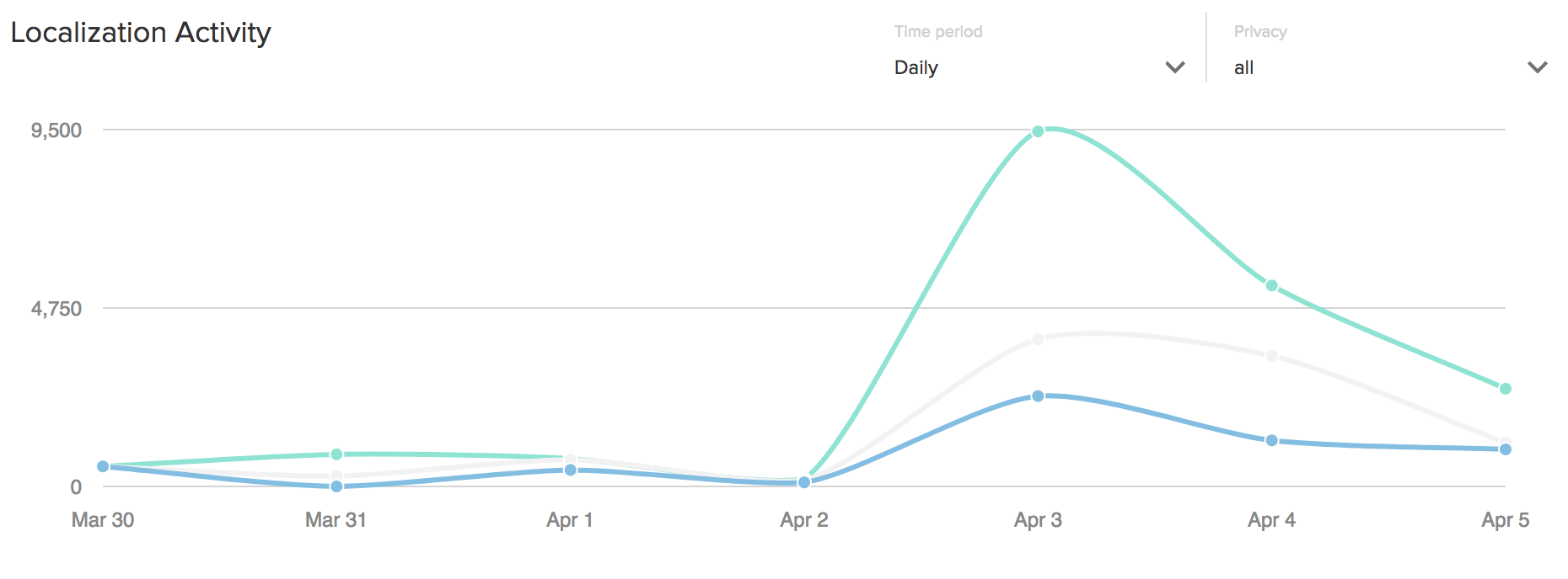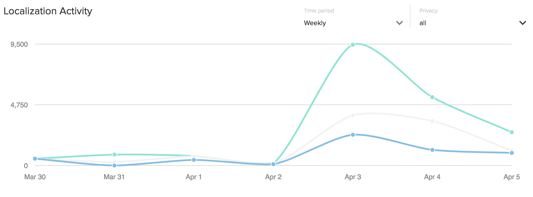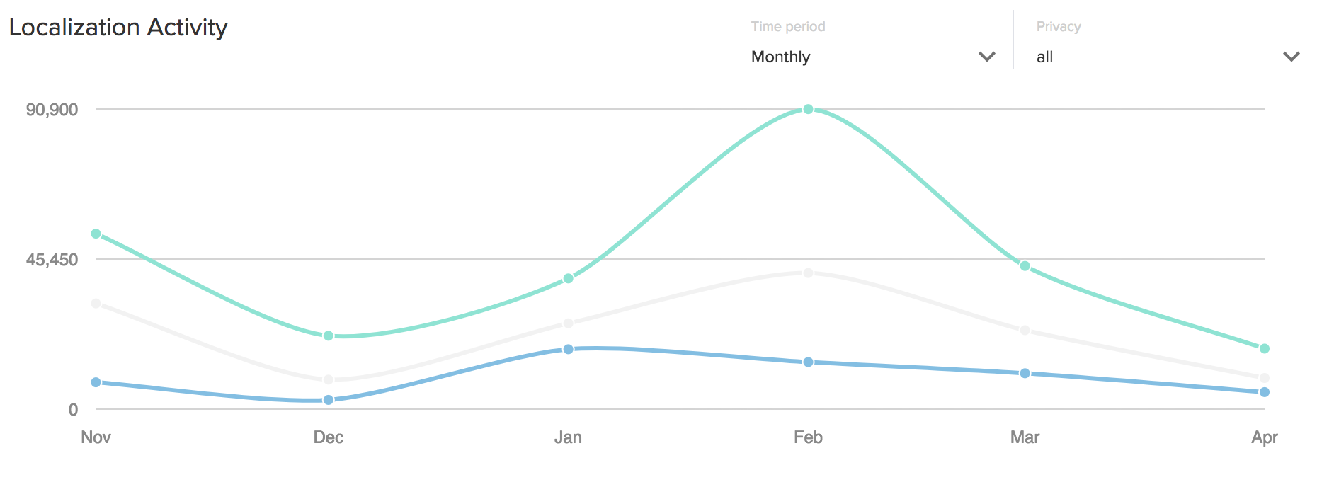 Hi everyone, Below is the monthly Transifex report for March, 2018: ### Report Attached are daily, weekly and monthly translation graphs. The Y axis is "source words”. 20.28k source words 1.83k source strings 3,495 collaborators 154 languages 53 Project resources 2 languages at 100% completion (across all 53 project resources): French (fr) Spanish (es) ![]() ![]() ![]() |
